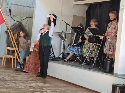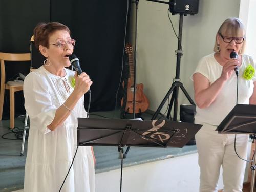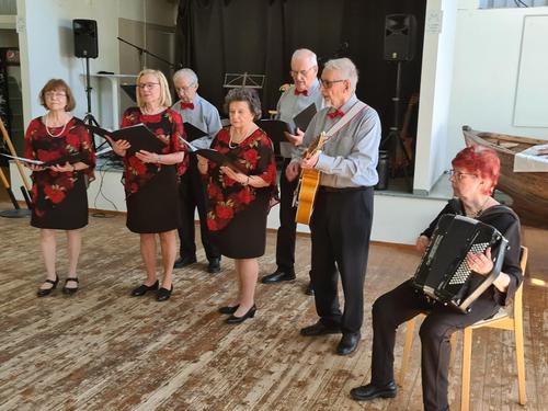 Juhla polkaistiin käyntiin uudella Eläkkeensaaja-laululla, jota johti Jouko Aalto Piikkiön Eläkkeensaajista. Yhdistyksessä on muitakin kultakurkkuja – sen todistivat Päivi Korvensyrjä ja Ritva Timonen, joiden yhteislaulu solisi kuin vuoripuro.