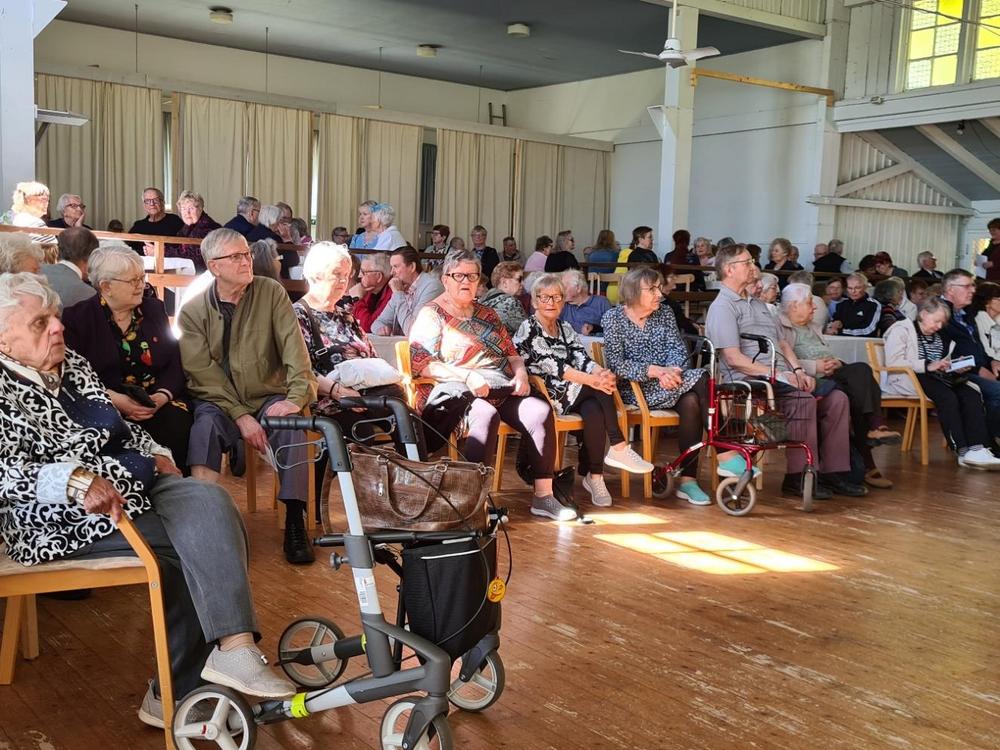 Ruissalon paviljonki natisi liitoksissaan, kun eläkkeensaajat viettivät piirin kesäjuhlaa toukokuisena tiistaina. Kaunis ilma ja keväinen luonto loivat sopivat puitteet juhlalle, mikä näkyi ennätysmäärässä osallistujia.