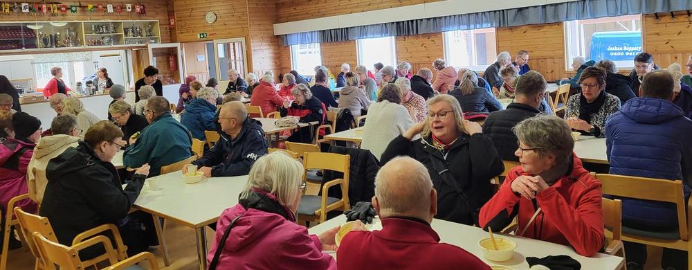 Noin 100 jäsentä osallistui talviriehaan, vaikka ilma oli kovin tuulinen. Kuvat: Anja Söderman. Kuvagalleria aukeaa ensimmäistä kuvaa klikkaamalla.